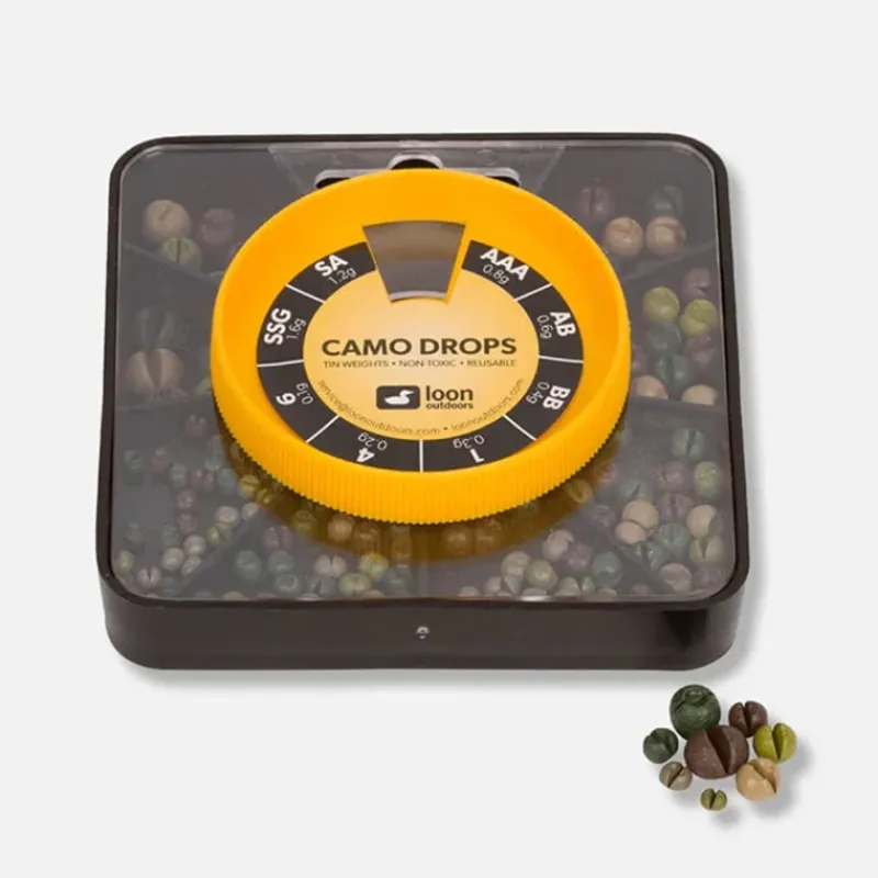 Both the Camo Drops and Black Drops come in 9 different sizes, as well as four different multi-packs. The individual twist pots conveniently dispense single weights, and are easily refilled.