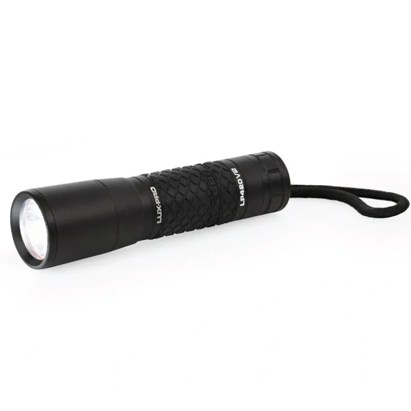 LUXPRO 300 lumen LED handheld flashlight. This compact flashlight has 3 lighting modes high, low and strobe. Access 300 lumens on High and 90 lumens on Low. The ultra-bright Strobe mode is crucial for emergencies. The hidden strobe can be accessed and exited by pressing the on/off button for approximately 3-4 seconds. Updated electronics allows users to turn the light off with one click after using the selected mode for more than 5 seconds. Constructed with aircraft-grade aluminum for durability and an enhanced rubber grip for secure hold. This light is o-ring sealed and waterproof with an IPX4 rating. It operates on and comes loaded with 3 AAA alkaline LUXPRO batteries.