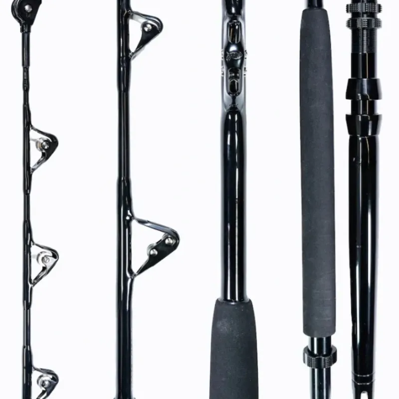 These rods are designed to provide the best value possible without sacrificing performance or quality. The pure black finish is beautiful and elegant, but also practical. We made sure to use the high quality components where it counts. These rods are a great high-end practical choice, and they’ll let you put more money towards that dream reel. Designed to deliver the best in offshore performance. These rods are built on a lightweight yet powerful blank that has the right amount of flex so that it does a lot of the work when fighting a big tuna. They have been outfitted with top of the line wind-on roller guides that are lighter in weight than other guides and allow your swivel to pass through them. We’ve fished and handled a lot of standup rods over the years and this is simply the best. If you love fishing offshore and want to do some serious trolling for tuna, outfit your boat with a one of these rods. You are going to love them!
