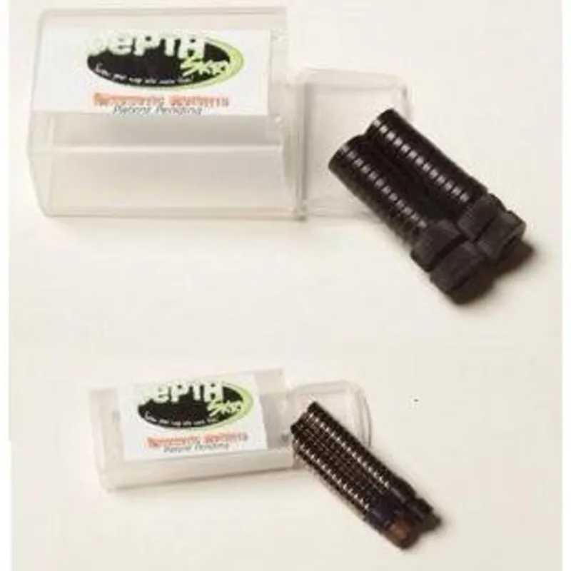 An amazing new patent pending easily adjustable weighting system that uses a split screw retainer on the line and small, heavy earth magnets attach to the split screw, start with 1 or 2 and add more as needed. They won’t t come off when casting. Revolutionary!