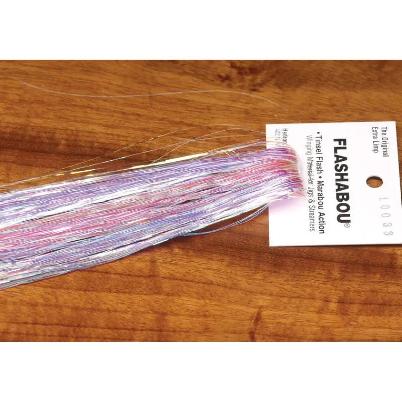 FLASHABOU is a popular synthetic material used in fly tying to add flash and sparkle to fly patterns. It consists of thin, flat, and highly reflective strands made of a metallic or holographic material. FLASHABOU is widely used in a variety of fly patterns to mimic the natural flash of baitfish scales, insect wings, or other underwater prey.