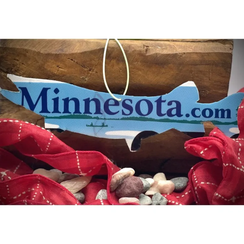 Compliment your holidays with a handmadeMinnesota pike ornament made out of authentic license plates hailing from the ‘Land of 10,000 Lakes’. This cool piece has the iconic canoers in the middle of a majestic late. Each piece is artfully unique due to using a variety of license plates, and is tied with a colorful fly line. This is a great holiday ornament, gift accessory, or accent piece for the fishing enthusiast. These fish are a limited edition and sell fast, so please place your orders today.