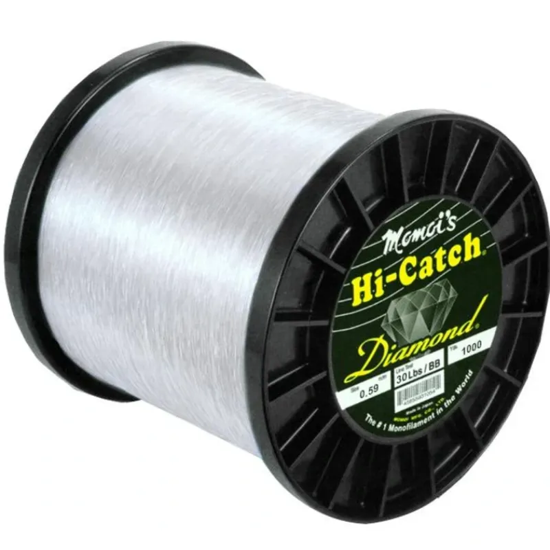 Momoi Hi-Catch Monofilament Line; this nylon line is an extremely high quality monofilament line produced using strict quality controls. It exhibits very low memory characteristics, and is very soft and flexible while maintaining a high tensile strength to diameter ratio. Small diameter lines with tensile strengths result in larger reel capacity when fighting hard charging game fish.