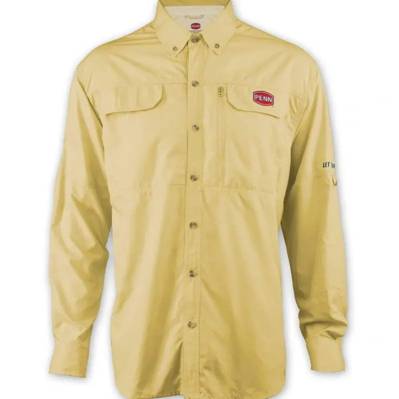 PENN Vented Shirts are constructed of 100% polyester, moisture wicking, and UPF 30 to keep you fishing on those hot humid days. Available in blue, tan, and yellow.