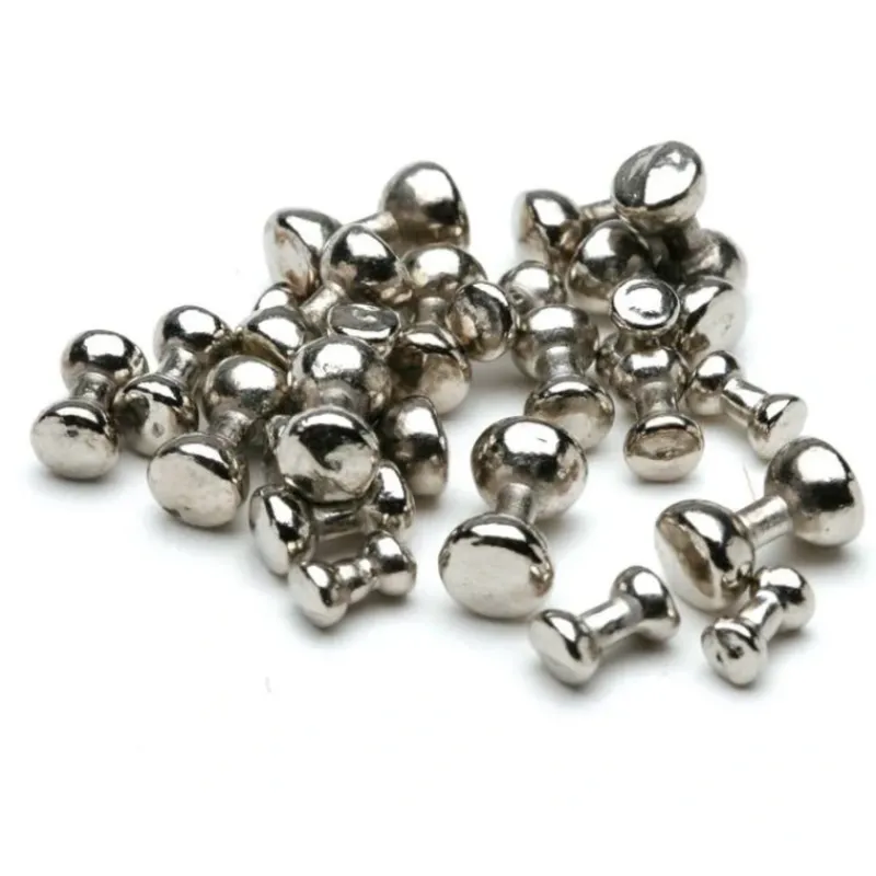 Heavy, lead eyes plated with shiny metal. These eyes are a staple material for many baitfish, shrimp or crab patterns. 10 pack.