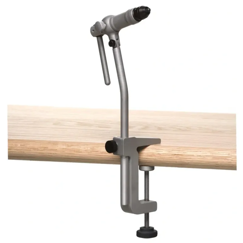 The Apprentise Rotary Vise offers you functionality, simplicity and quality that a beginner as well as the experienced tyer will be satisfied with for years. The standard features of The Apprentise are a rotary head with an aluminum tension knob, black oxide jaw housing and jaws and a silver powder coated c-clamp with a 8 hinged stem.