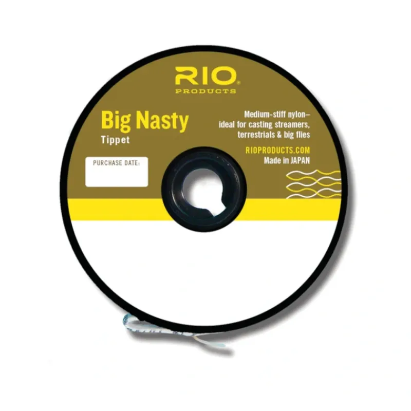 RIO Big Nasty Tippet , designed to cast large, heavy or air resistant flies. The tippet is made of a medium stiff nylon that easily turn over streamers, big terrestrials (like hoppers and stoneflies), and cope with tough winds. The copolymer material is incredibly tough and highly abrasion resistant.