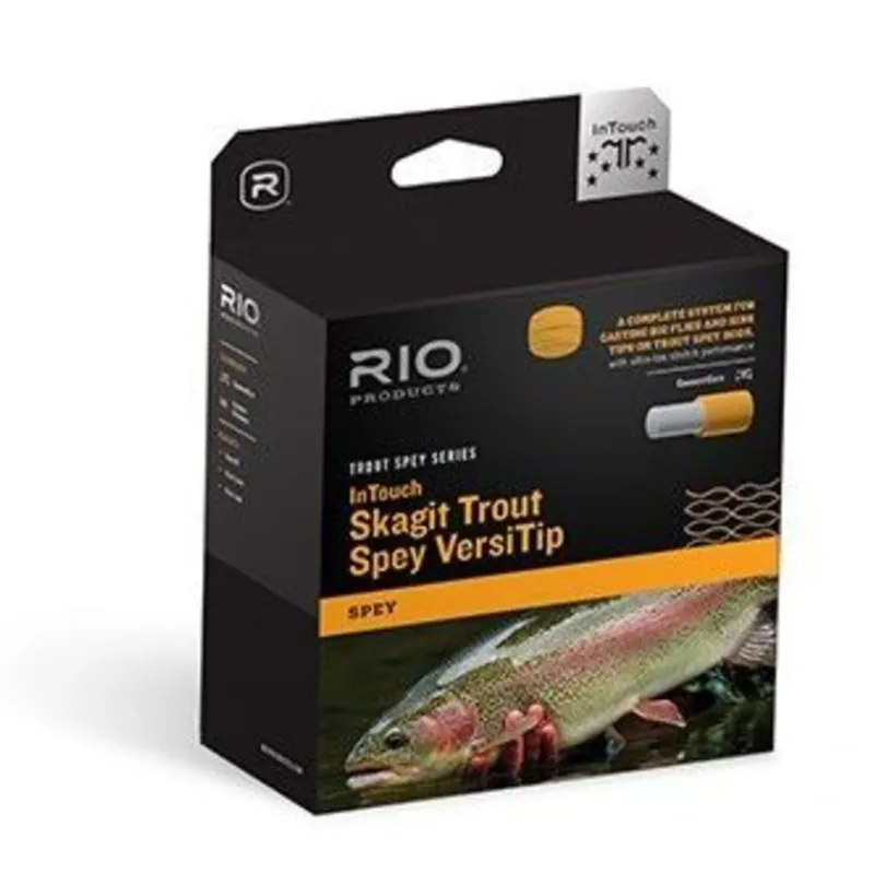 Rio InTouch Skagit Trout Spey VersiTip, a very easy casting, short head style system that will throw big flies and fast sinking tips with exceptional ease. Designed for swinging and stripping streamers for anglers using light two-handed trout Spey rods, as well as regular single-handed fly rods (just check the grain weight to match). Each box contains a shooting head and a balanced set of tips and a shooting line making it ready to fish straight out of the box.