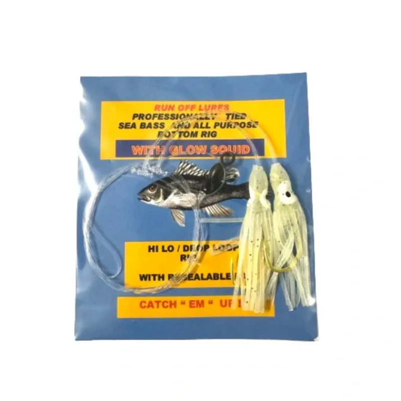 - Run Off Lures professionally tied sea bass and all purpose bottom rig with glow squid. This professionally hand tied rig is made with the finest components exclusively for Run Off Lures.