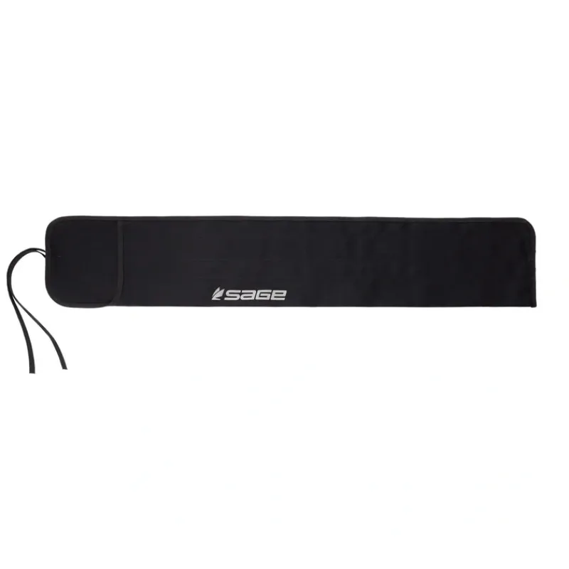 A black cloth rod bag from Sage, with silkscreened logo.