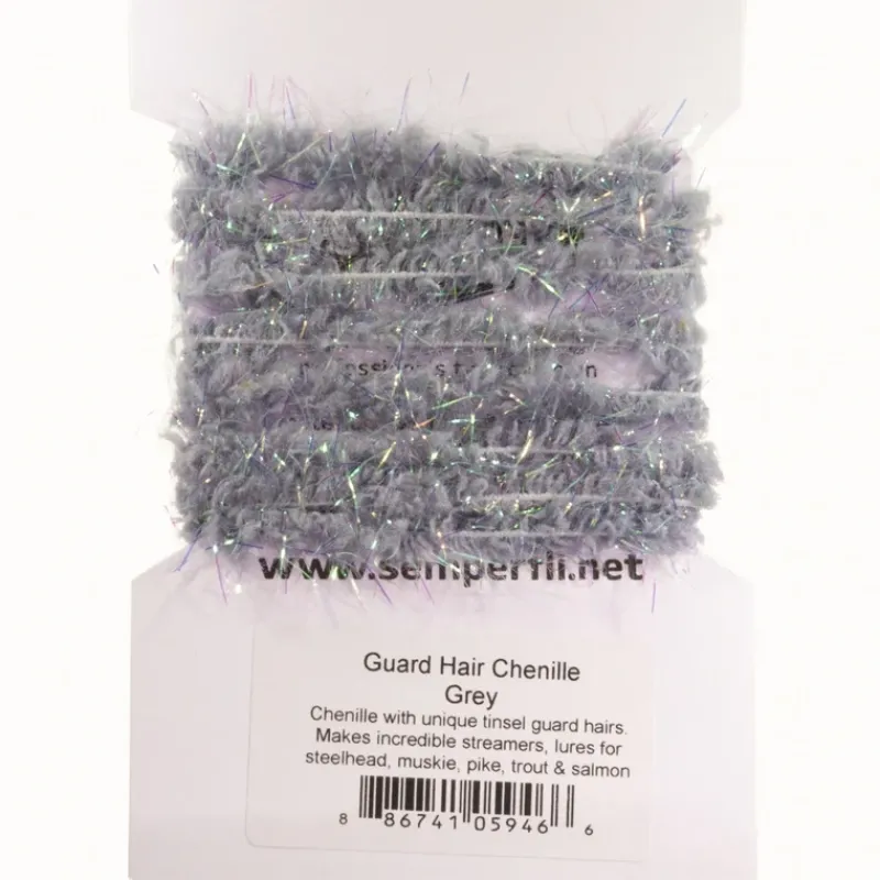 Guard Hair Chenille imitates animal fur with guard hairs for fishing flies. When you look at animal fur we see protruding guard hairs which are loved by fly tyers. These add body and give movement to flies. Guard Hair Chenille was designed to imitate the natural fur of animals using gold tinsel that protrudes above the chenille. Guard Hair Chenille is ideal for streamers, saltwater and predator patterns where the gold guard hairs provide movement and create stunning fly patterns. Try on buggers and humungous for larger mobile bodies.