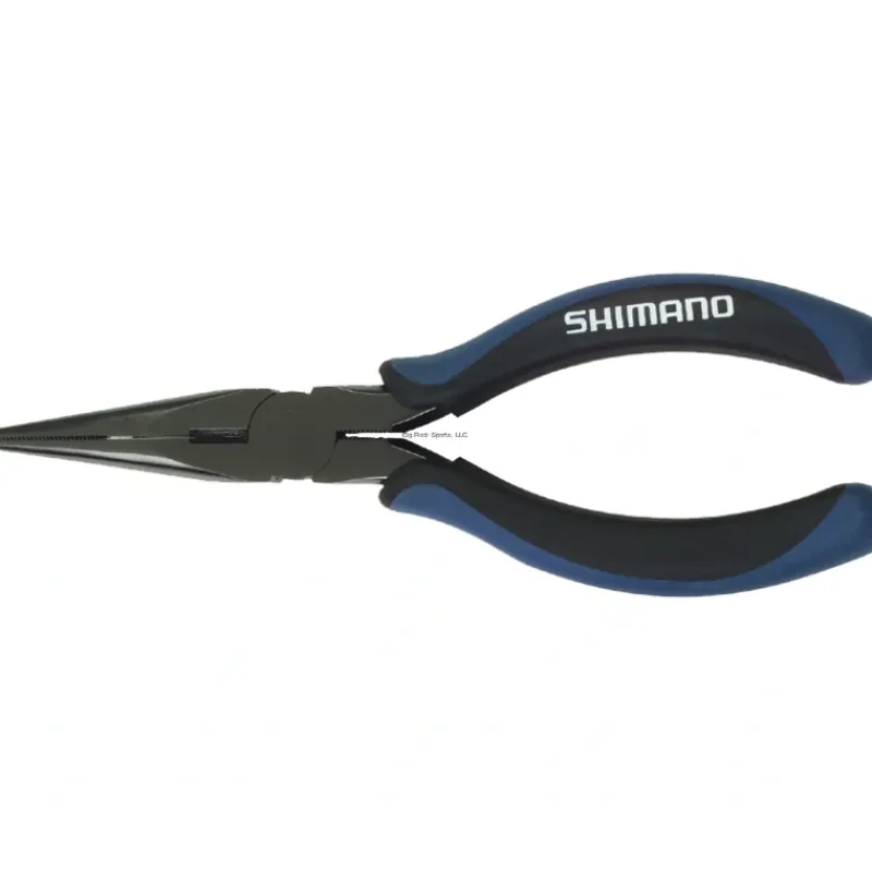 Shimano Brutas Long Nose Pliers, 6″, Gray/Blue Handles, Black Nickel