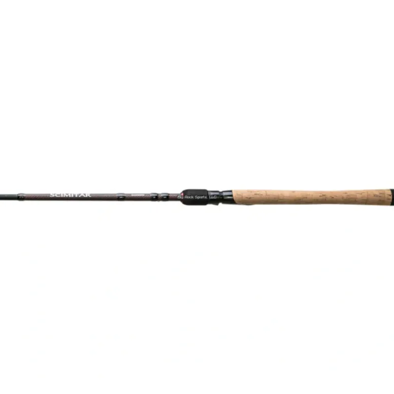 Featuring an eye catching appearance and high performance capabilities, the Shimano Scimitar Spinning Rods are a great option for anglers of all levels. The Scimitar is a true “do-it-all” series that features quality Shimano construction at a fantastic value. The blanks are designed to perform well in various fishing applications without limitation. In terms of components, the Scimitar is fitted with titanium oxide guides suitable for all types of fishing lines, along with EVA foregrips and quality cork reargrips. From floating night crawlers under bobbers for panfish at your local park, to chasing trophy bass and walleye on famous reservoirs, the Shimano Scimitar performs well in the hands of any angler from novice to expert.