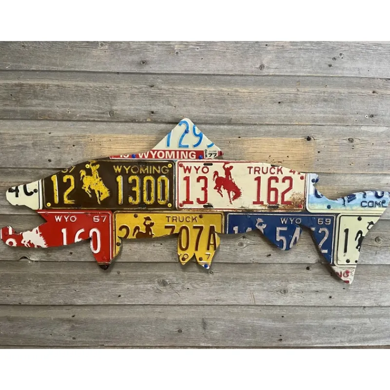 “No-Frame” – All of my pieces are built by wrapping license plates around 3/4-inch wooden base and are ready to hang straight out of the box. Each comes with pre-fitted and reinforced hanging wire, so you can mount the piece however you feel in your space.
