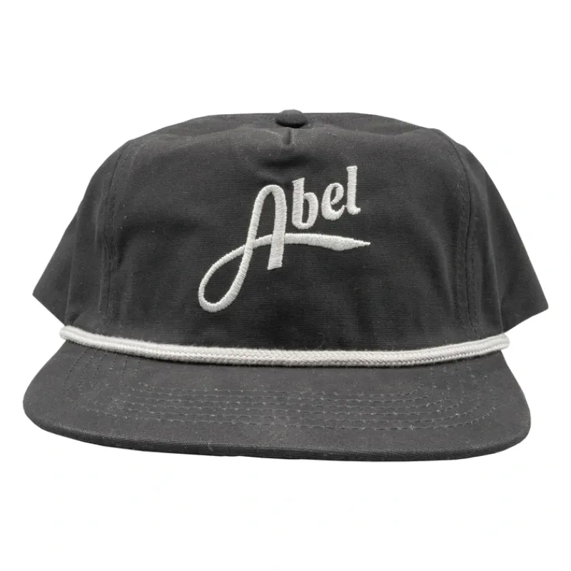 5 panel unstructured black rope cotton canvas flat bill featuring an Abel embroidered logo.