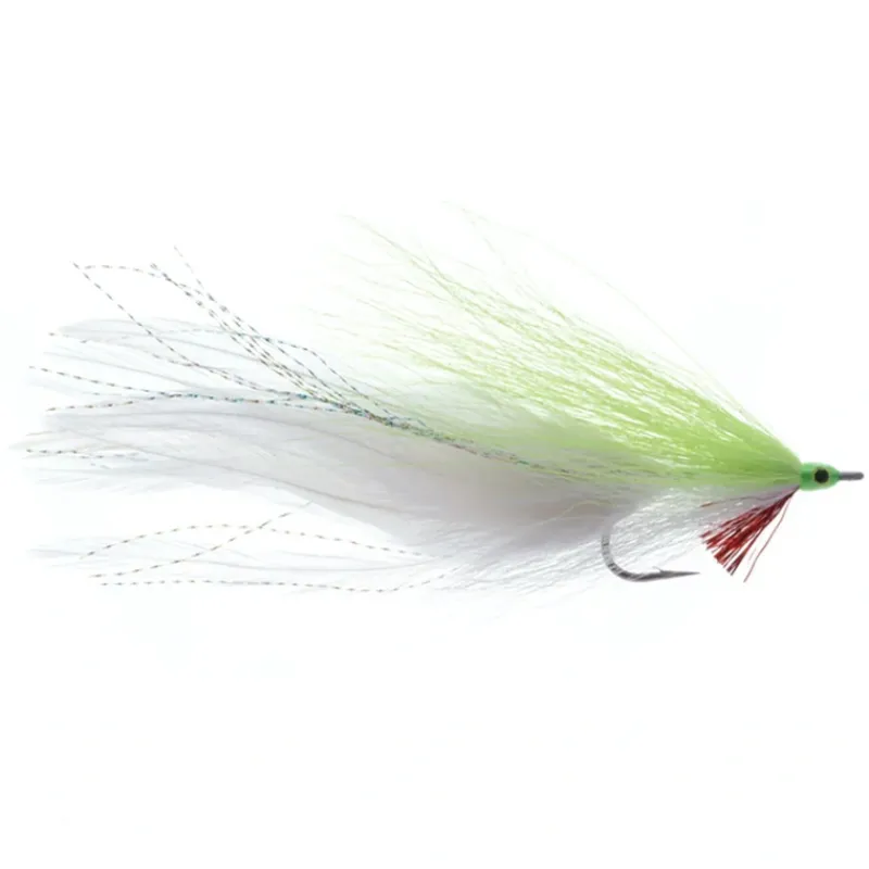 Magnum sized chartreuse over white Deceiver. Will pretty much catch any swimming predator if you hold your mouth just right. Size 3/0 only