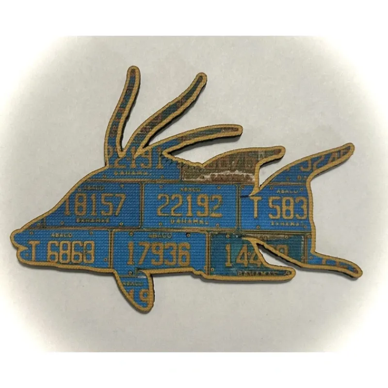 Keep cool with this Bahamas hogfish hat made with nostalgic antique license plates throughout the islands. This hat is printed on a variety of Richardson and Pacificsnap-back meshhats and comfort foamies to fit your individual needs. These featurea made-in-USA patchwith vibrant license plates on the brow!These hats will keep you stylish and coolwhile in the sun playing, or in the shade with a rum drink in hand.