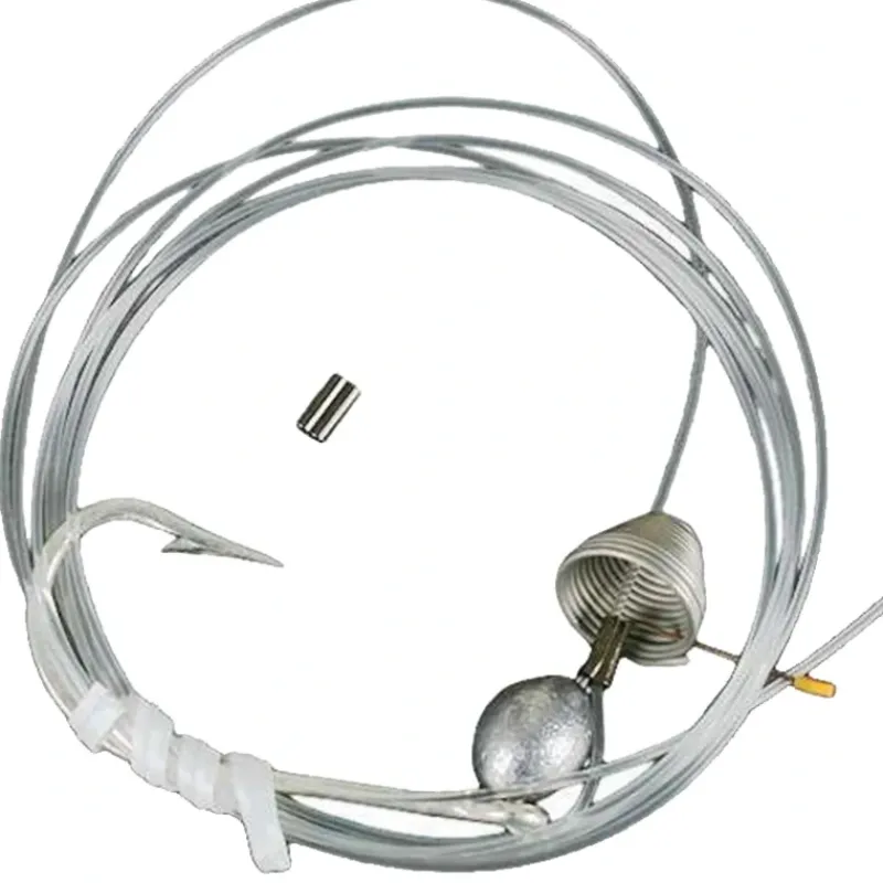 Naked Fluorocarbon Ballyhoo Rigs are assembled using 7/0 or 8/0 hooks on 90 lb Fluorocarbon leader with a nose spring and chin weight. Can be used as is or you can add on your favorite skirt when targeting dolphin, marlin, tuna, and wahoo.