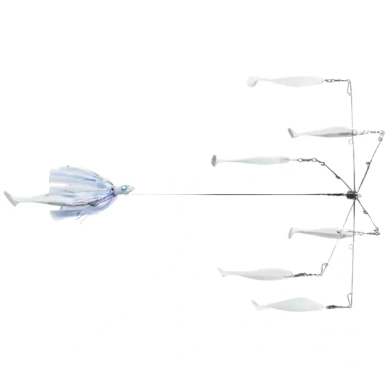 - Amp up the excitement level by pulling the Blue Water Candy Rock Fish Candy 6-Arm Umbrella Rig through striped bass territory. This sturdy weighted rig is proven to raise good fish into your spread! Features a 6-arm umbrella with a 20″ spread, pre-rigged with 6″ shad bodies on each arm. On the business end, the center trailer comes armed with a 4-oz. Spire head parachute in front of a 9″ shad body on tandem 9/0 hooksa great setup for big fish!