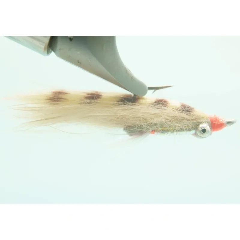 Henry Cowen’s Bonefish Scampi was developed in the mid 1990s in the Bahamas for picky and finicky bonefish. Widely fished across the flats of Belize, Mexico, Los Roques, and even the Seychelles. This version is tied with a barred bunny fur wing and bead chain eyes to make it suspend in the water column.