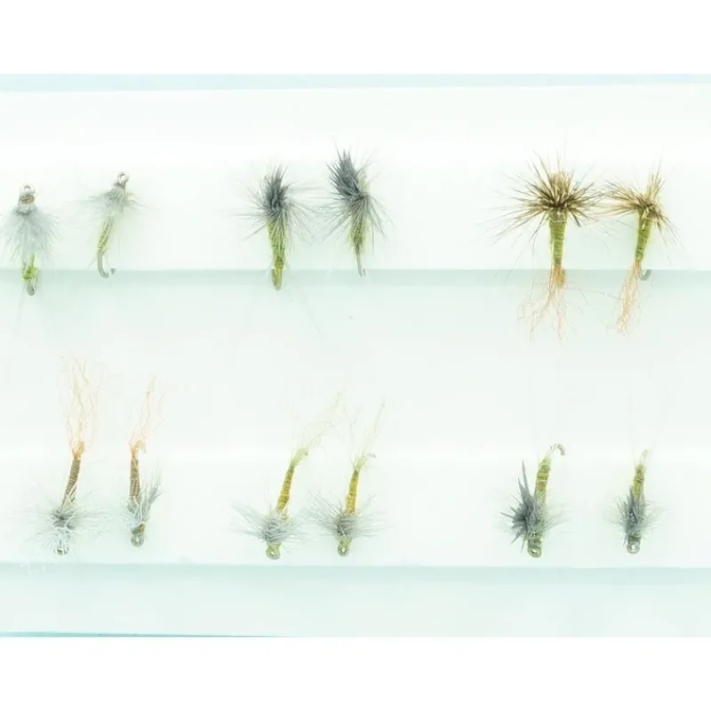 BWO is short for Blue Winged Olive but is also referred to as a baetis. These are tiny Mayflies that can hatch any time of year, but primarily in the cooler months of Fall, Winter and Spring. Their colors are pale olive to dark olive. Blue Winged Olives are a very important food for trout and this assortment consists of our bestselling sizes and patterns that represent BWO dries.