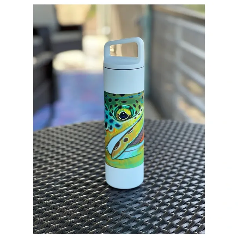 Thoughtful design features make our new DeYoung Brown Trout Face 20 oz.Water Bottle easy to stash ice, carry and clean. Featuring Thermo 3D double wall vacuum insulation, it keeps any beverage hot or cold for hours on end.