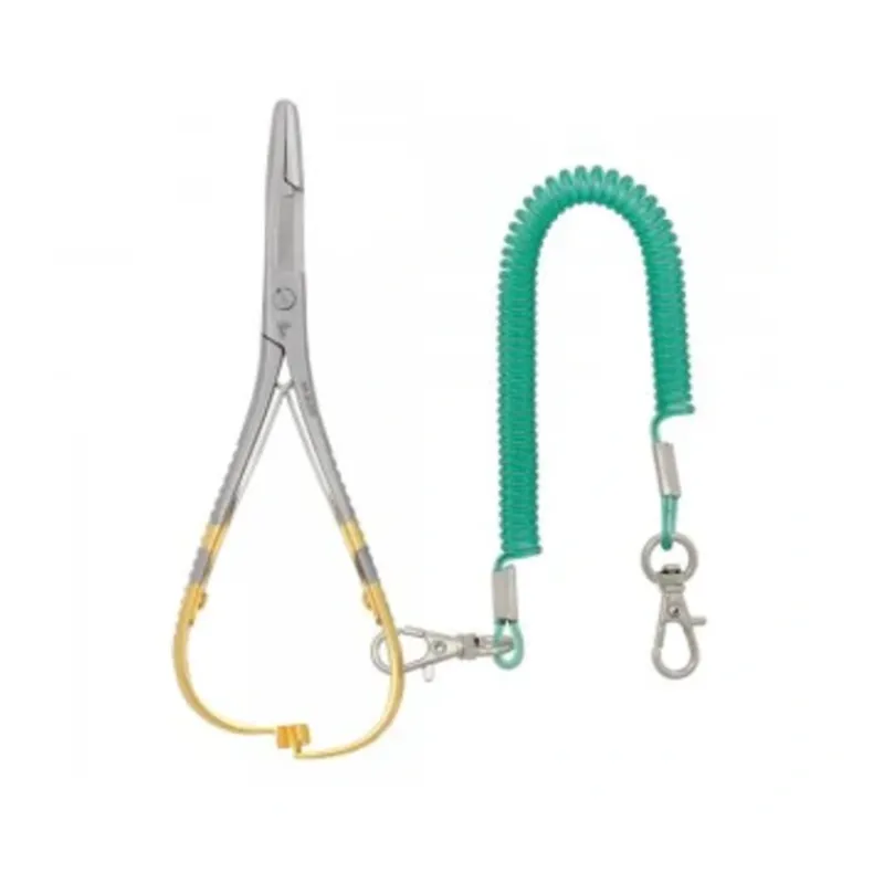 In 5.5″. Same basic concept as the mitten clamps, but with a serrated scissor mounted behind the jaws. This addition allows for cutting tippet/leader material, trimming flies stream-side or opening that pesky bag of jerky. Comes spring-loaded, and with wrist lanyard attached.