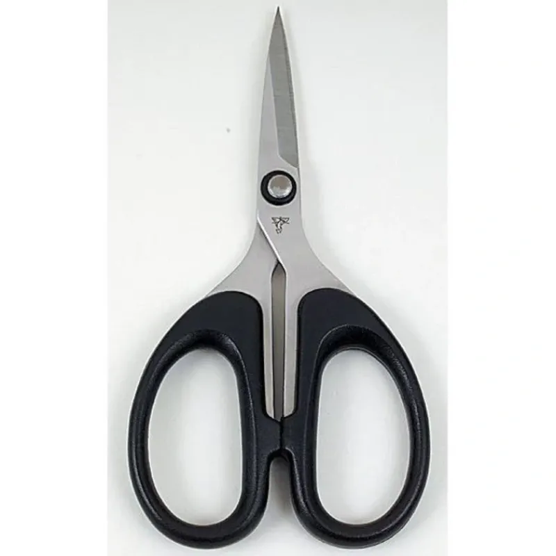 Designed for cutting heavy natural and synthetic materials. Heavy blades with large serrations for cutting tough stuff like glo bug yarn, foam, leather, plastic, bead chain, lead, wire, and mylar. A must for all tying benches. Black Loops, Serrated Blade, Straight Blade Only, 5 Inches in length.
