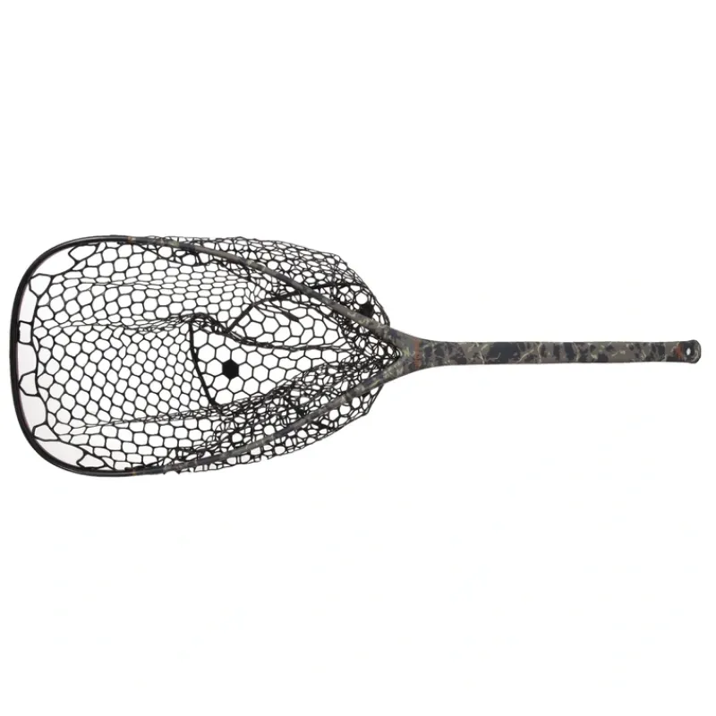 Nomad nets are made using a mixture of carbon fiber and fiber glass. The result is a very lightweight and durable net. Nomad nets are built for the conditions that prevail where great fishing exists; they are waterproof, UV protected, and float like a cork. All Nomad nets come standard with a clear rubber bag.