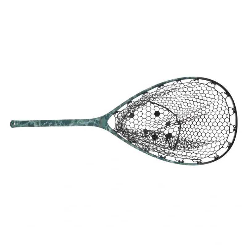 Nomad Nets are constructed with carbon fiber/fiberglass composite material. The result is a very lightweight and durable net. Nomad Nets are built for the conditions that prevail where great fishing exists; they are waterproof, UV protected, and float like a cork. All Nomad Nets come standard with a rubber bag.