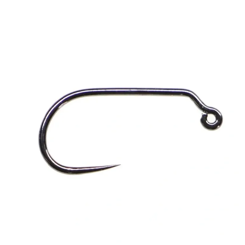 Fulling Mill Jig Force Black Nickel Barbless Hook 50-Pack, 50 Degree eye, 2 X Heavy, Claw Point and a black nickel finish.