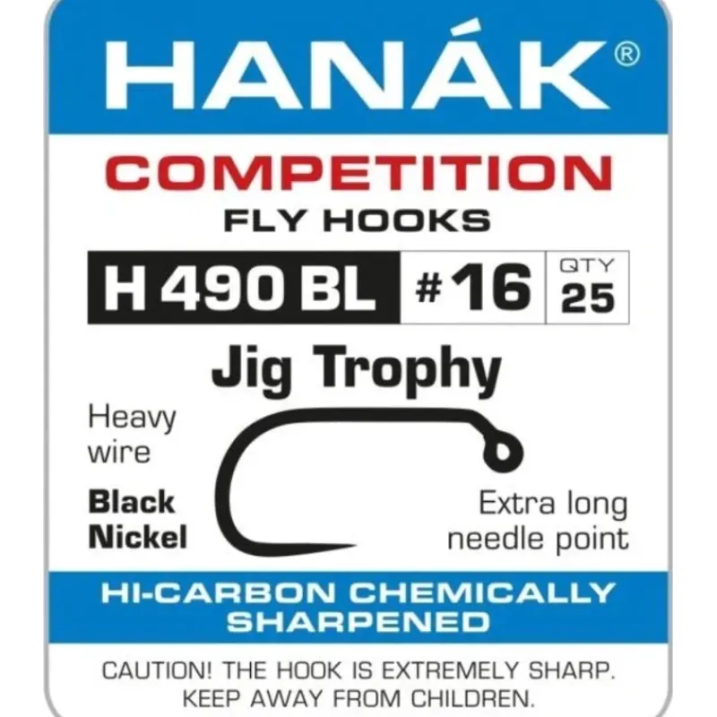 The exceptional, innovative design of Hanak hooks increases efficiency of hooking and landing of fish. This effect is reached by using HI Carbon steel and by the special shape of the hook, finished with an extra-long needle point. Use of barbless hooks dramatically reduces damage to fish, it limits injury and shortens handling time caught fish.