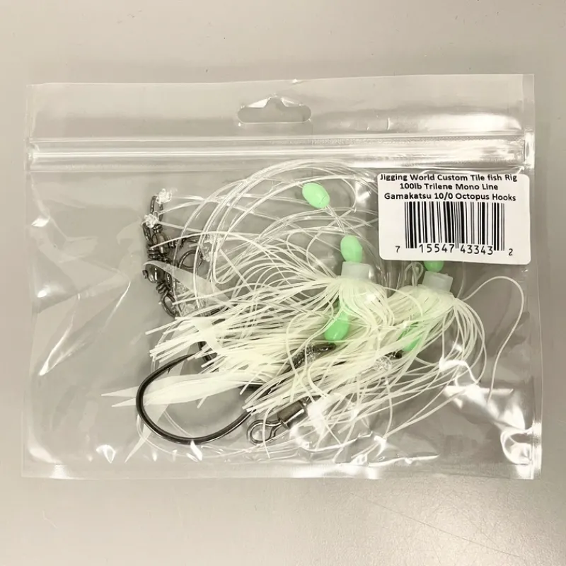 The Jigging World Tilefish rigs come with a glow skirt and beads. Made with 100lb trilene mono and 10/0 Gamakatsu octopus hooks.