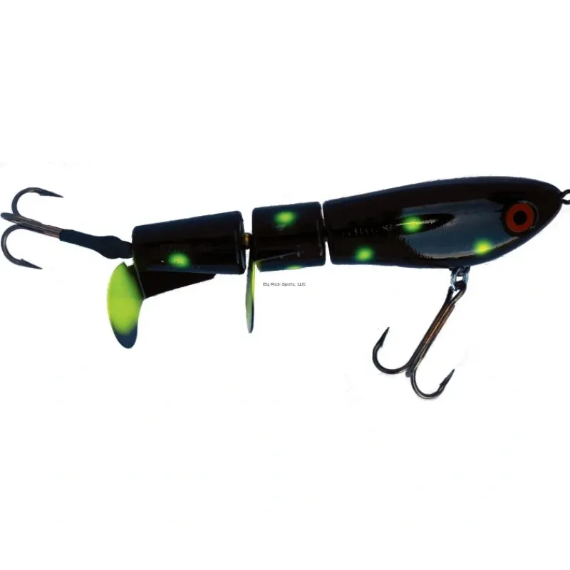 - 9″, 4.6 Twin-Prop Musky Plug, Black Chartreuse