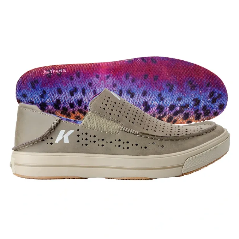 Its a summer ready shoe. Its a hidden slipper. And its 100% comfortable. Featuring our Cush-Tech uber-comfy footbed for all-day wear. Grip all terrain with a non-marking Kling-On Deck rubber with incredible grip on wet surfaces. Not to forget the star of the show, beautiful fish prints from Derek DeYoung one of the greatest fish artists of our time.