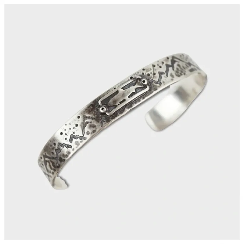 Our classic Trout 2.0 badge with ridge line pattern on silver cuff.