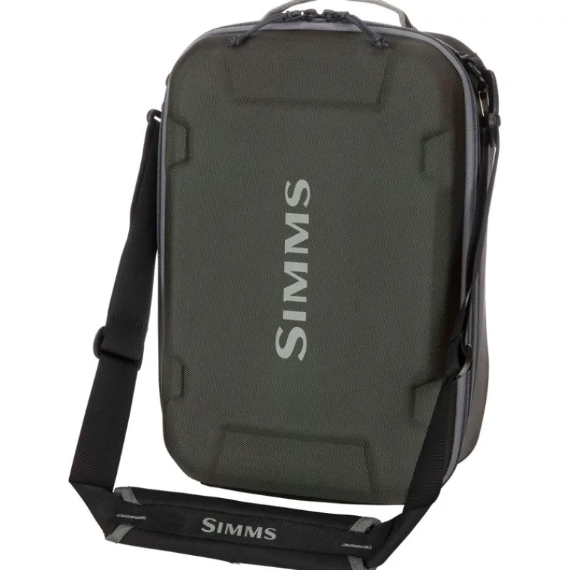Simms GTS Reel Vault Carbon, features padded, configurable dividers for keeping 8 to 10 reels at the ready and protected. The compression-molded exterior bucks abuse while in transit. Multiple zippered mesh pockets and sleeves keep leaders and lines organized. And a removable divider shields reel tops during transfer. Crush- and weather-resistant mini-suitcase for organizing and safeguarding reels, camera gear, electronics and other critical gear.