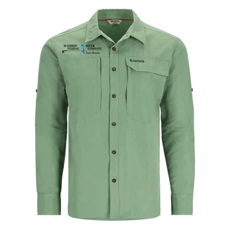 - Classic point collar for a crisp look and casual feel, center back locker loop and button-front closure. Finished with shirttail hem, self-fabric side seam gusset and convenient sunglasses chamois