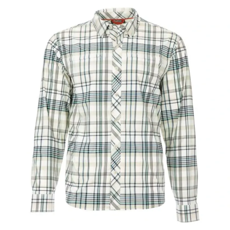 Savvy fishing shirt for fighting harsh sun, humidity, and hatches that bite back. Simms BugStopper Shirt – Plaid long sleeve blocks sun, dries quick, wicks, and fights swarms thanks to advanced Insect Shield tech. A polyester-nylon blend with 2 zip-secure, fly-box compatible chest pockets. Articulated elbows enhance mobility. And a sunglass chamois inside the bottom hem keeps optics clear. Traditional fit comes standard.