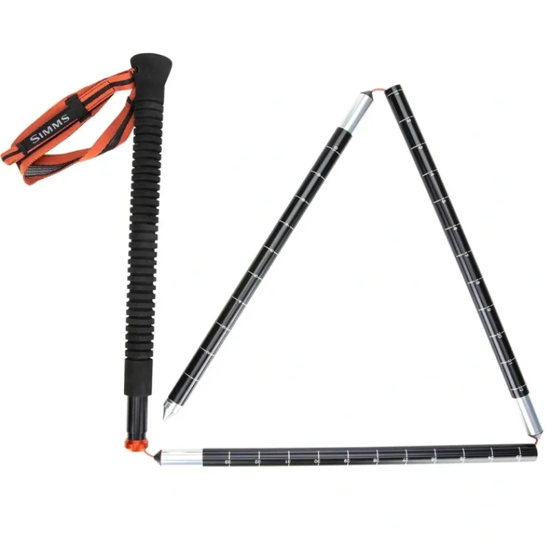 Strength and simplicity win the CFS battle with this modern take on the classic wading tool Lightweight yet highly durable 7075 aluminum tubing with coated stainless steel cable and ribbed closed-cell foam handle To deploy: Grip the orange aluminum ring to pull down on the slider shaft until the spring-loaded pin pops out locking the shaft sections together To collapse: Press the spring-loaded pin allowing the slider shaft to slide up, releasing the tension which holds the shaft sections together. Pull the sections apart and bring each section together to fold and re-sheath. Deployed length: 54.75 in (140 cm) | Collapsed length: 14 in (35.5 cm)