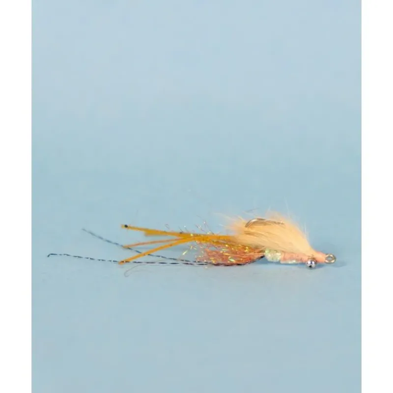 Skinny Shrimp, Perfect for very shallow flats when the bones are wary. In the situation where any splash and they’re gone, switch to this little shrimp pattern for gentle presentations, let it settle and then the slightest strip will hopefully provoke the response.