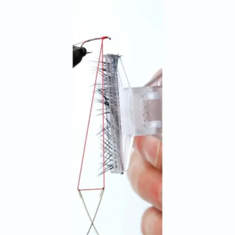 Hair clips indispensable to make a dubbing loop using various types of hair and hackles. Made of strong clear plastic material its shape is designed to simplify the use. The locking surfaces have a slight roughness that allows perfect clamping of the fibers.